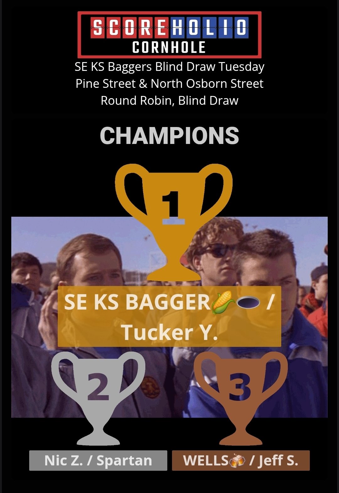 SE KS Baggers wants to thank everyone for turning out for our November 11th, Tuesday Night Blind Draw Tournament at Gas City, KS. We had 22 players. Please join us again on Friday, November 14th for our next Friday Night tournament in Kincaid, KS. Our next Tuesday Night Blind Draw will be on November 18th. Both events are already set up on Scoreholio. Please support our sponsors and let them know we appreciate them.