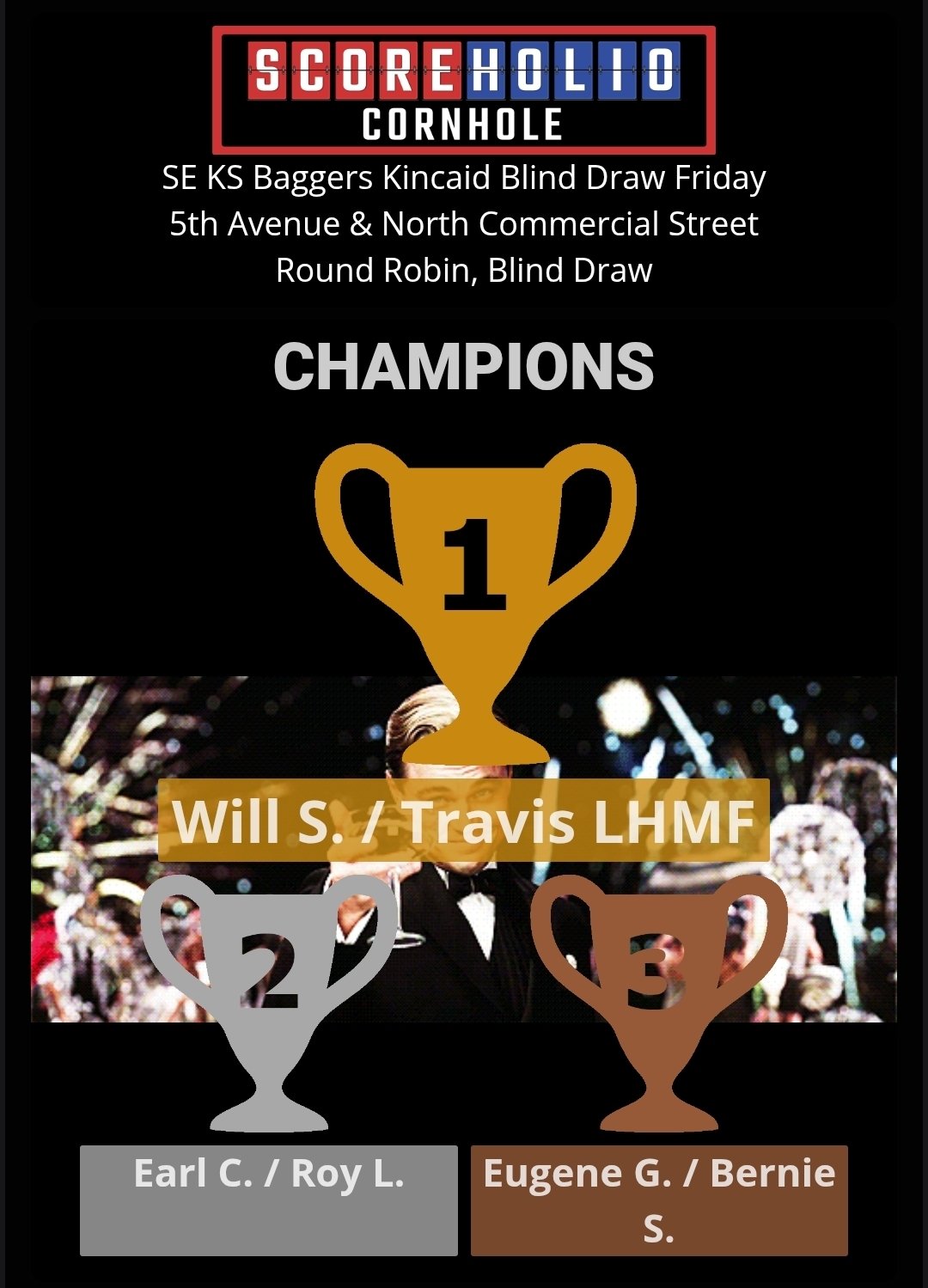 SE KS Baggers wants to thank everyone for turning out for our November 14th, Friday Night Blind Draw Tournament at Kincaid, KS. We had 20 players, including 3 new players to our group. Please join us again on Friday, November 21st for our next Friday Night tournament in Kincaid, KS. Our next Tuesday Night Blind Draw will be on November 18th. Both events are already set up on Scoreholio. Please support our sponsors and let them know we appreciate them.