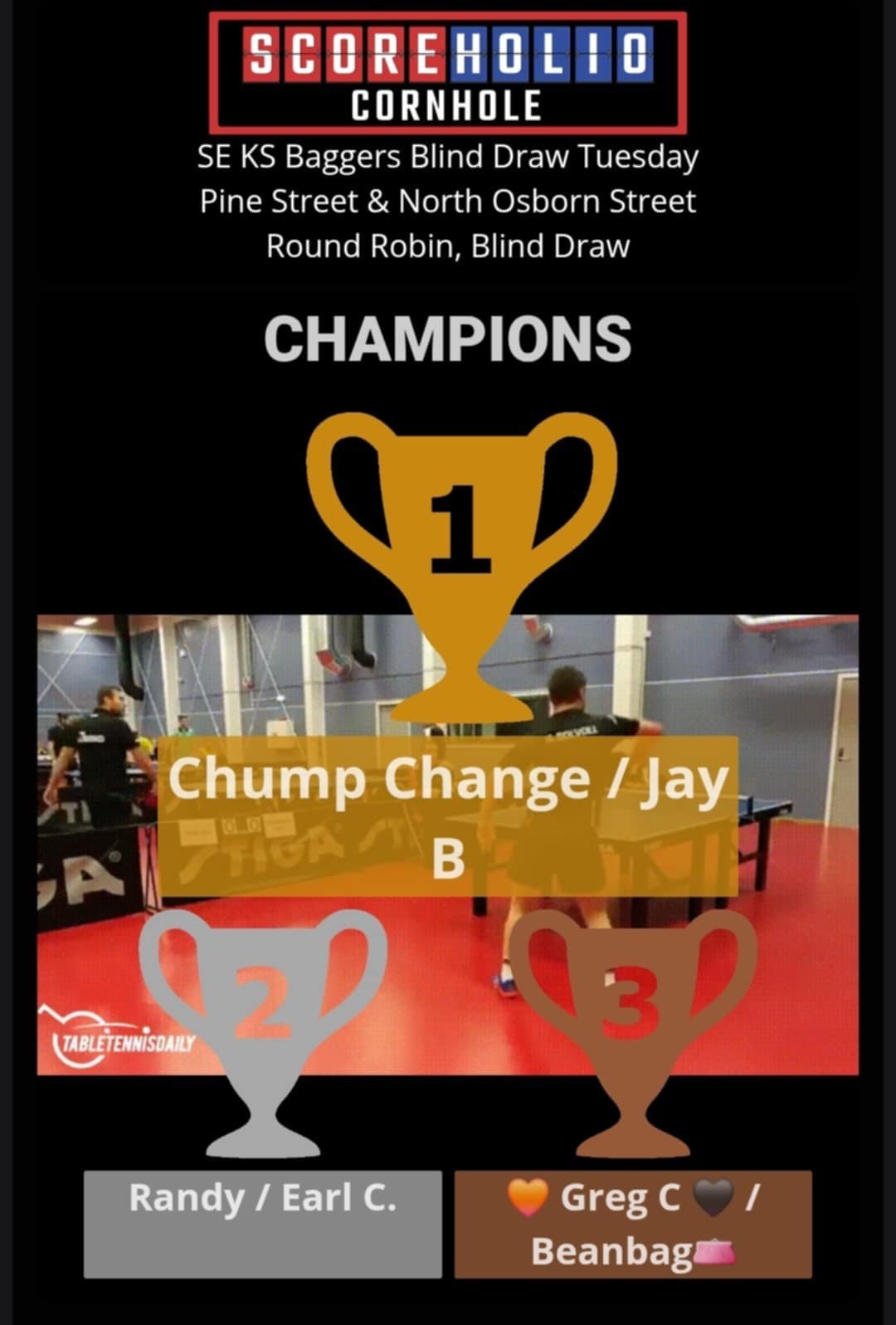 SE KS Baggers wants to thank everyone for another nice turnout for our April 22nd, Tuesday Night Blind Draw Tournament at Gas City, KS. We had a great turnout of 30 players. Please join us again on April 29th for our next Tuesday Night Blind Draw. It is already set up on Scoreholio.