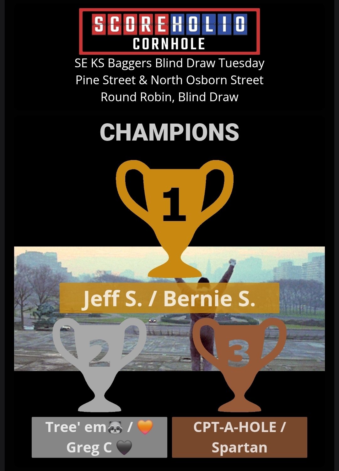 SE KS Baggers wants to thank everyone for another nice turnout for our September 2nd, Tuesday Night Blind Draw Tournament at Gas City, KS. We had a fun group of 12 players. Please join us again on September 9th for our next Tuesday Night Blind Draw. It is already set up on Scoreholio.