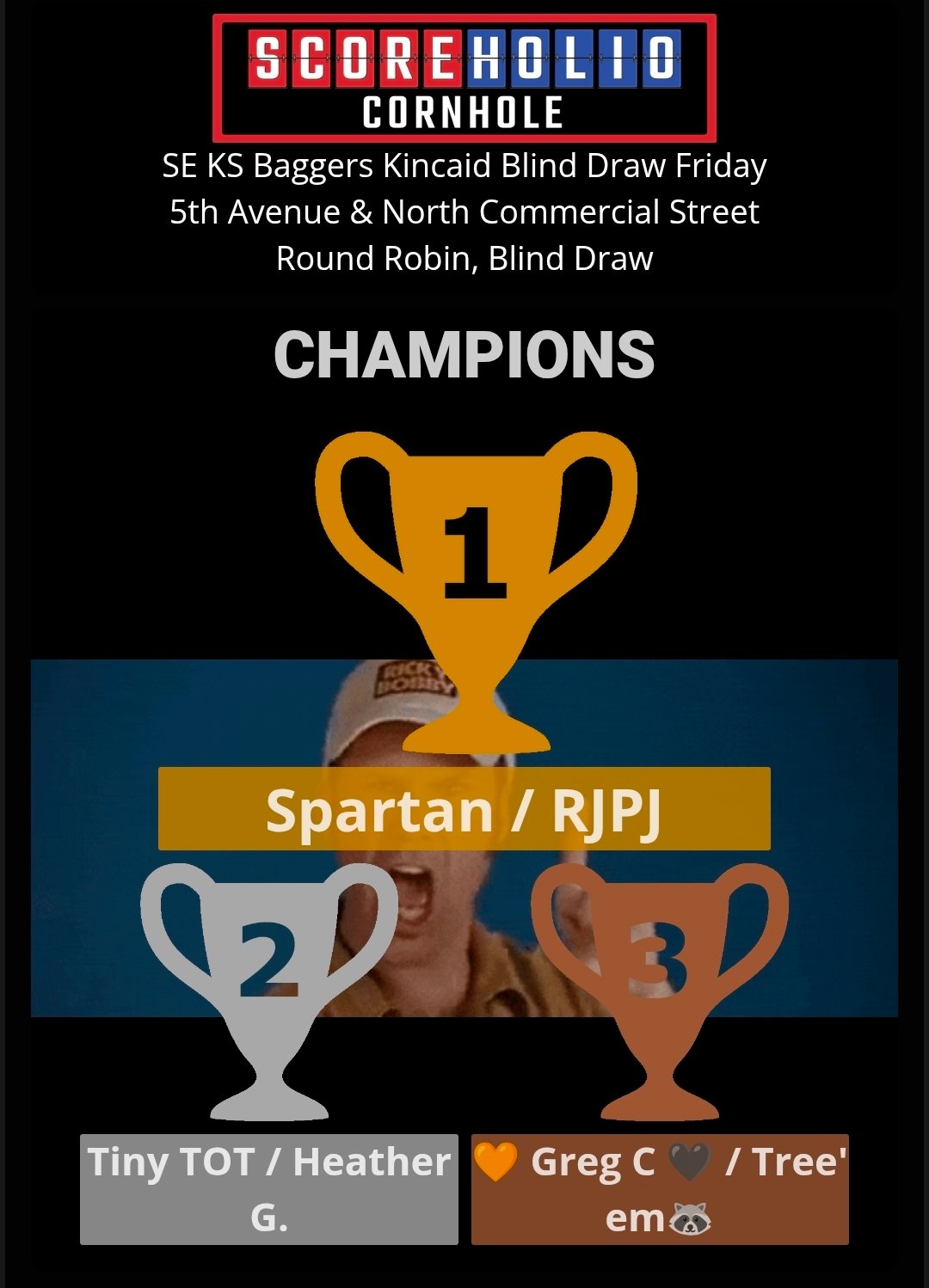 SE KS Baggers wants to thank everyone for turning out for our January 16th, 2026 Friday Night Blind Draw Tournament at Kincaid, KS. We had 26 players. Please join us again on Friday, January 23rd for our next Friday Night Blind Draw in Kincaid, KS. Our next Tuesday Night Blind Draw will be on January 20th . Both events are already set up on Scoreholio. Please support our sponsors and let them know we appreciate them.