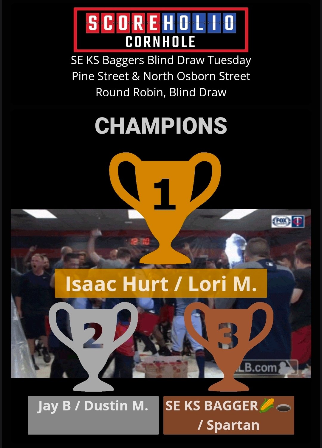 SE KS Baggers wants to thank everyone for turning out for our January 6th, Tuesday Night Blind Draw Tournament at Gas City, KS. We had 21 players. We had Isaac Hurt, an ACO Pro Player join us for the night of Cornhole. Our next Tuesday Night Blind Draw will be on January 13th . It is already set up on Scoreholio. Please support our sponsors and let them know we appreciate them.