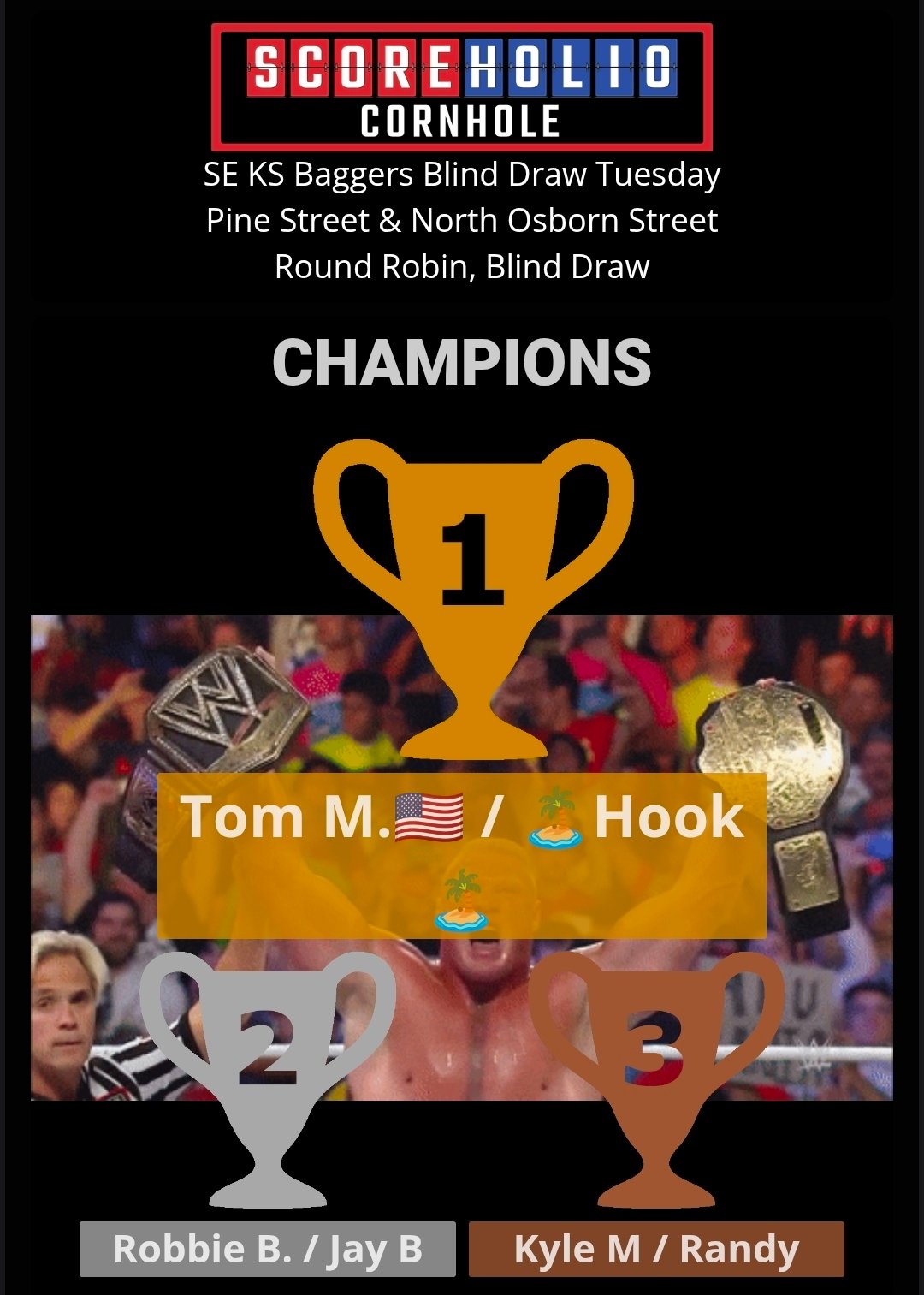 SE KS Baggers wants to thank everyone for turning out for our February 10th, Tuesday Night Blind Draw Tournament at Gas City, KS. We had 18 players. Our next Tuesday Night Blind Draw will be on February 17th . It is already set up on Scoreholio. Please support our sponsors and let them know we appreciate them.