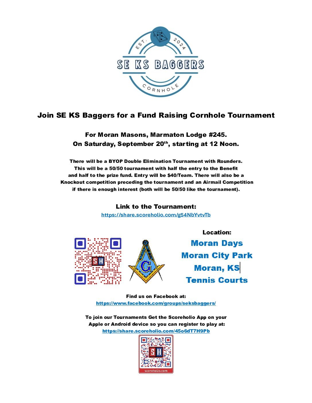 Moran Days Cornhole Tournament - Marmaton Lodge # 245 Masons